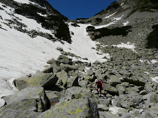 Vanmorgen toen wij wakker werden en ons bed uitgingen was het maar 8 graden in ons hutje. We hadden het vannacht ook best koud gehad onder onze gatendekens. We kregen een veel te groot ontbijt in de hut, bij de kachel en een lunchpakket wat we niet hadden willen hebben. Met al ons eten gingen we om even over achten op pad. Al snel zagen we de eerste orchis en daarna was het gewoon weer warm en gingen alle kleren weer uit. Het was weer een prachtige wandeling waarbij we vanaf 1900 meter naar 2500 meter liepen en toen weer naar beneden tot 2000 meter en weer omhoog naar 2500 meter. De hut waar we heen liepen lag op 2200 meter. We kwamen nu nóg meer sneeuwvelden tegen waar we heel omzichtig omheen moesten of als het niet anders kon, erover. Op een gegeven ogenblik kregen wij een hond mee. Hij liep heel braaf met ons mee en speelde echt voor herder. We moesten bij elkaar blijven en hij deed echt of ie bij ons hoorde. Toen we over de tweede top heen kwamen, zagen we de hut liggen. Dat zag eruit als een super de luxe grote hut. We zagen de biertjes al naar ons lonken vanaf het terras. Toen we dichterbij kwamen leek de hut al minder lux. Eenmaal aangekomen bij de hut, bleek hij van binnen totaal gestript. Er was een grot verbouwing bezig. Totaal ontdaan liepen we toch maar naar binnen. "Ah, de mensen van Zigzag! Welkom" we kregen een kamer en toen we er binnenkwamen, bleek ie heel mooi te zijn met een lekker bed en een prachtige badkamer. Hier moesten we wel al ons eten zelf betalen. We hadden een maaltijd gelijk met de familie die de hut bestierde. Plotseling kwam er visite voor de familie en werd het heel gezellig in de hut.